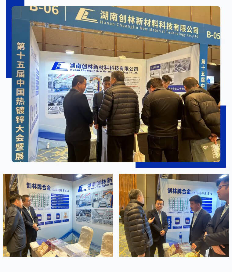 會上,湖南創(chuàng)林新材料展示了多款熱鍍鋅合金產(chǎn)品,這些產(chǎn)品在提高鍍鋅效果、降低鋅耗等方面表現(xiàn)出色,吸引了不少行業(yè)內(nèi)人士的關(guān)注??偨?jīng)理周業(yè)翔攜團(tuán)隊熱情接待參觀嘉賓,并就產(chǎn)品技術(shù)、市場開拓、合作發(fā)展等事宜與嘉賓進(jìn)行探討分享,交流互鑒。