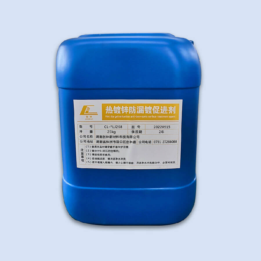 CL-FLJ268熱鍍鋅防漏鍍促進(jìn)劑為淺藍(lán)色水溶液,主要成分為水溶性有機(jī)螯合劑、表面活性劑、抗氧劑、活化劑及金屬有機(jī)化合物。本產(chǎn)品不含鉛、鎘、汞、鉻(Ⅵ)、氟、磷,屬于環(huán)保型產(chǎn)品。經(jīng)本產(chǎn)品處理的鋼材,再經(jīng)常規(guī)氯化鋅-氯化銨助鍍劑處理后,能在鋁含量在0.01%-0.15%的鋅液中鍍鋅而不出現(xiàn)漏鍍。