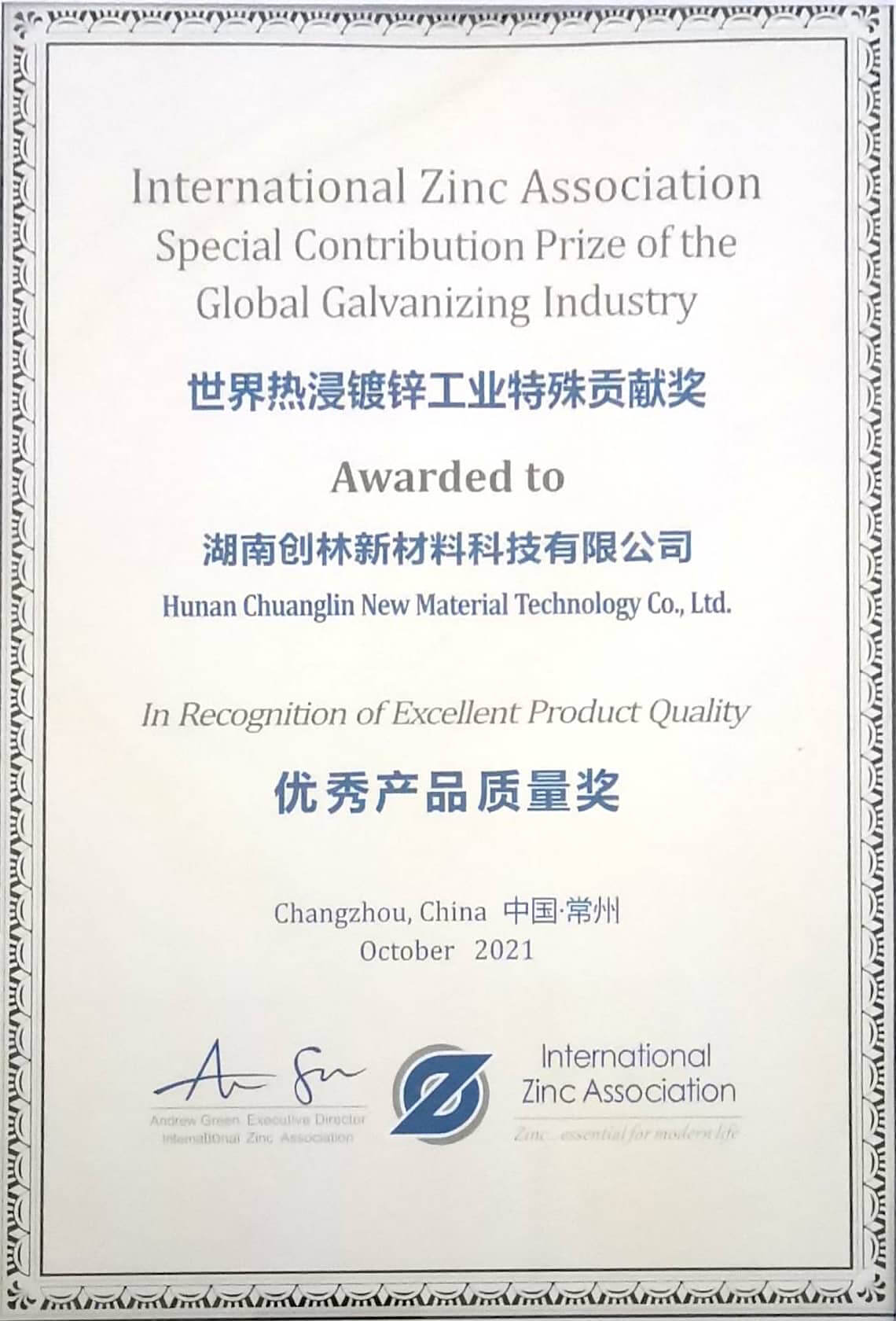 International Zinc Association Special Contribution prize of the Global Galvanizing Industry